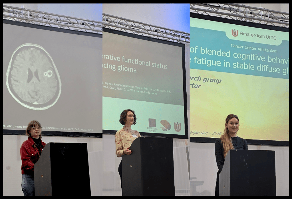 The annual scientific meeting of the Dutch association for neuro-oncology is a highlight of our year, in terms of sharing our own research, but also learning about what is happening across The Netherlands. Mona, Eva and Maxine presented their findings this year, and the rest of us enjoyed the other talks and the networking!